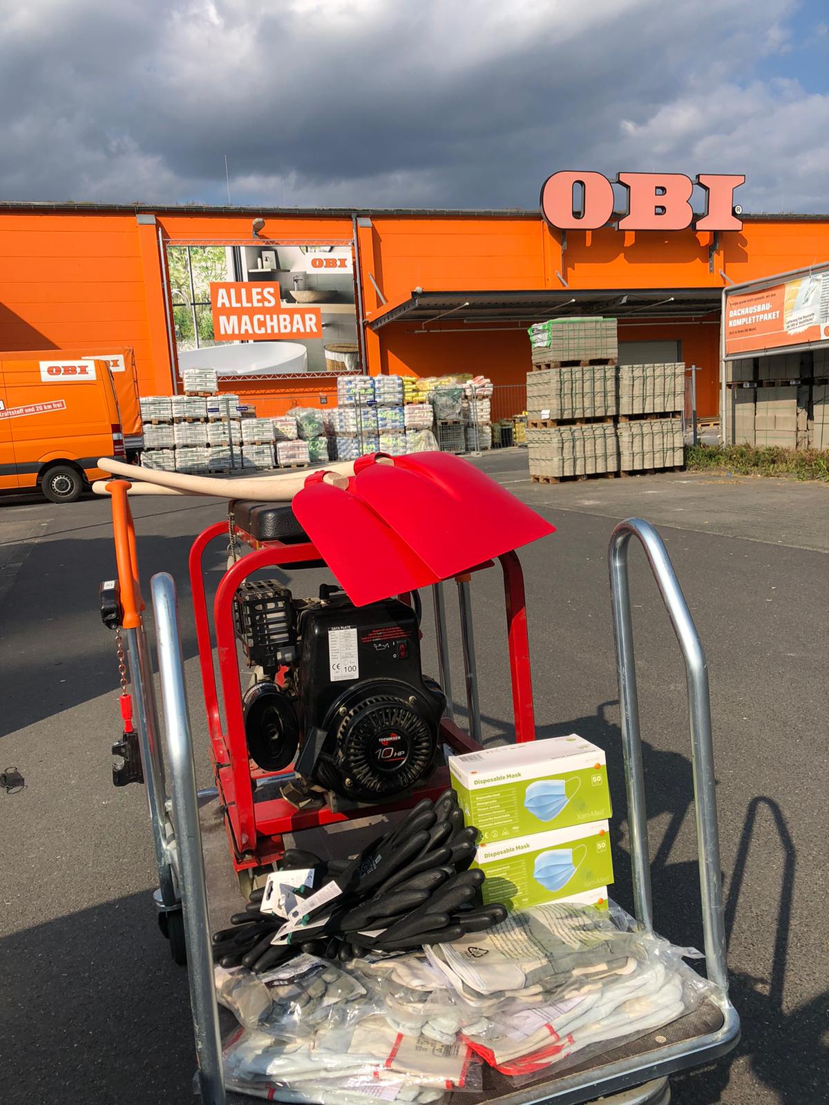 Vor unserer Abreise schenkten uns OBI Haiger und OBI Dreieich einige Utensilien wie Arbeitskleidung, Schaufeln, Generator und Handschuhe. Dafür haben wir ihnen herzlich gedankt.