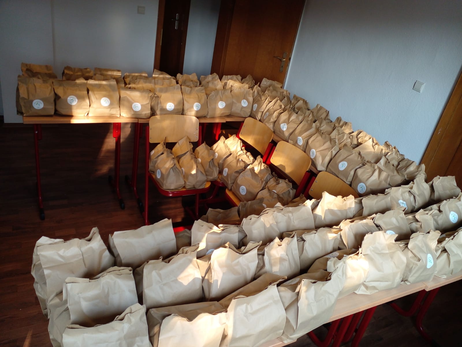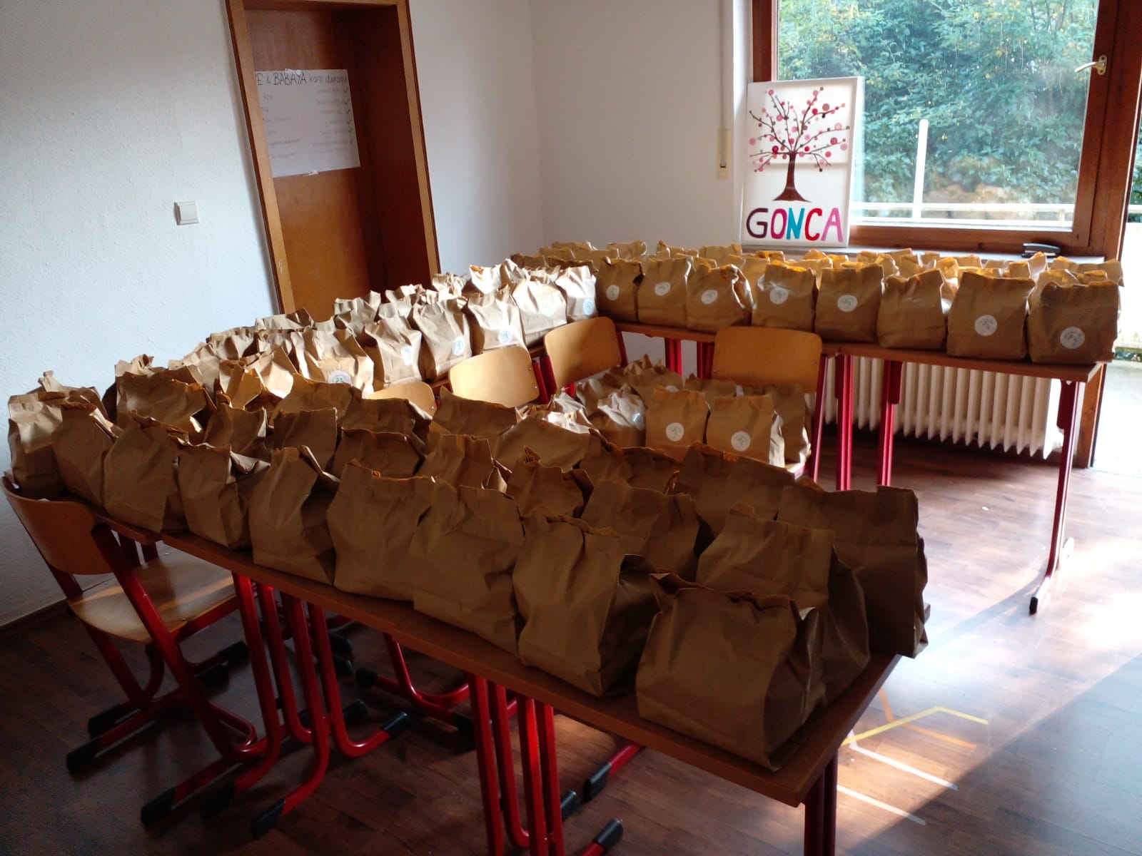 Unsere Mitglieder bereiteten kleine Lebensmittelpakete vor, um sie an die Opfer zu verteilen.