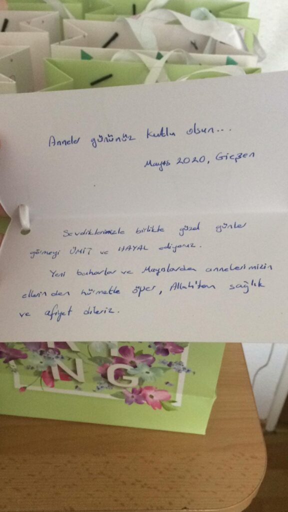 Muttertagsgeschenke unseres Vereins wurden zum Muttertag an die Mütter im Flüchtlingslager Gießen und in den Wohngemeinschaften der Flüchtlinge übergeben.